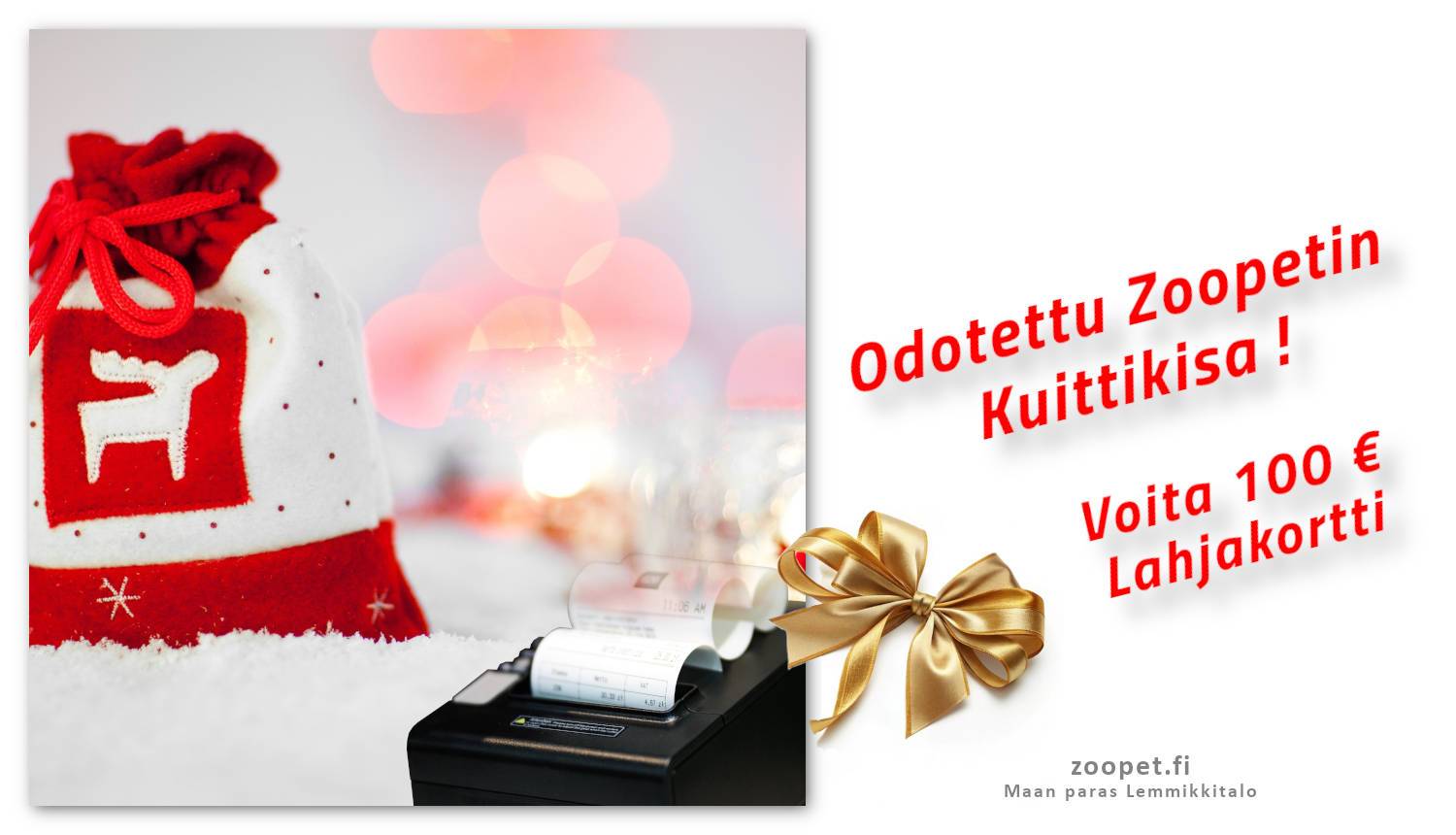 100 euron lahjakortin Zoopettiin joulukuisten asiakkaidemme kesken.